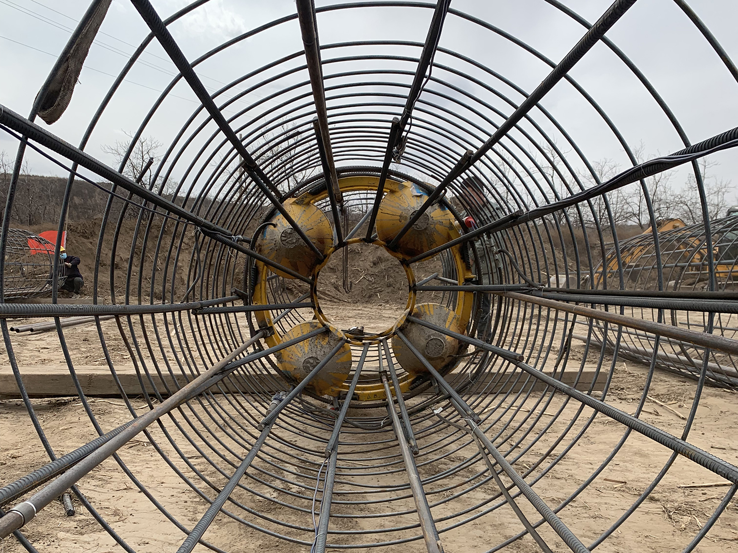 解决方案:该项目管线布置多(4根位移杆、4根声测管、双油管、钢筋计和土压力缆线),欧感工程师根据经验在每一节钢筋笼上提前把管线都布置好并做好保护,大大缩短下笼时间。